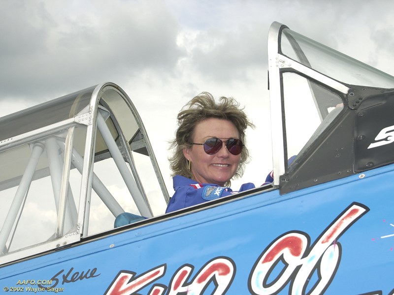 Most of you who frequent this website will immediately recognize the smiling face behind those big pilot sunglasses as the fiercely competitive Mary Dilda of the "Two of Hearts Air Race Team." That this lady is a tiger on the racecourse is a well known fact, that she also rips up the sky each year on the air show circuit is far less known.