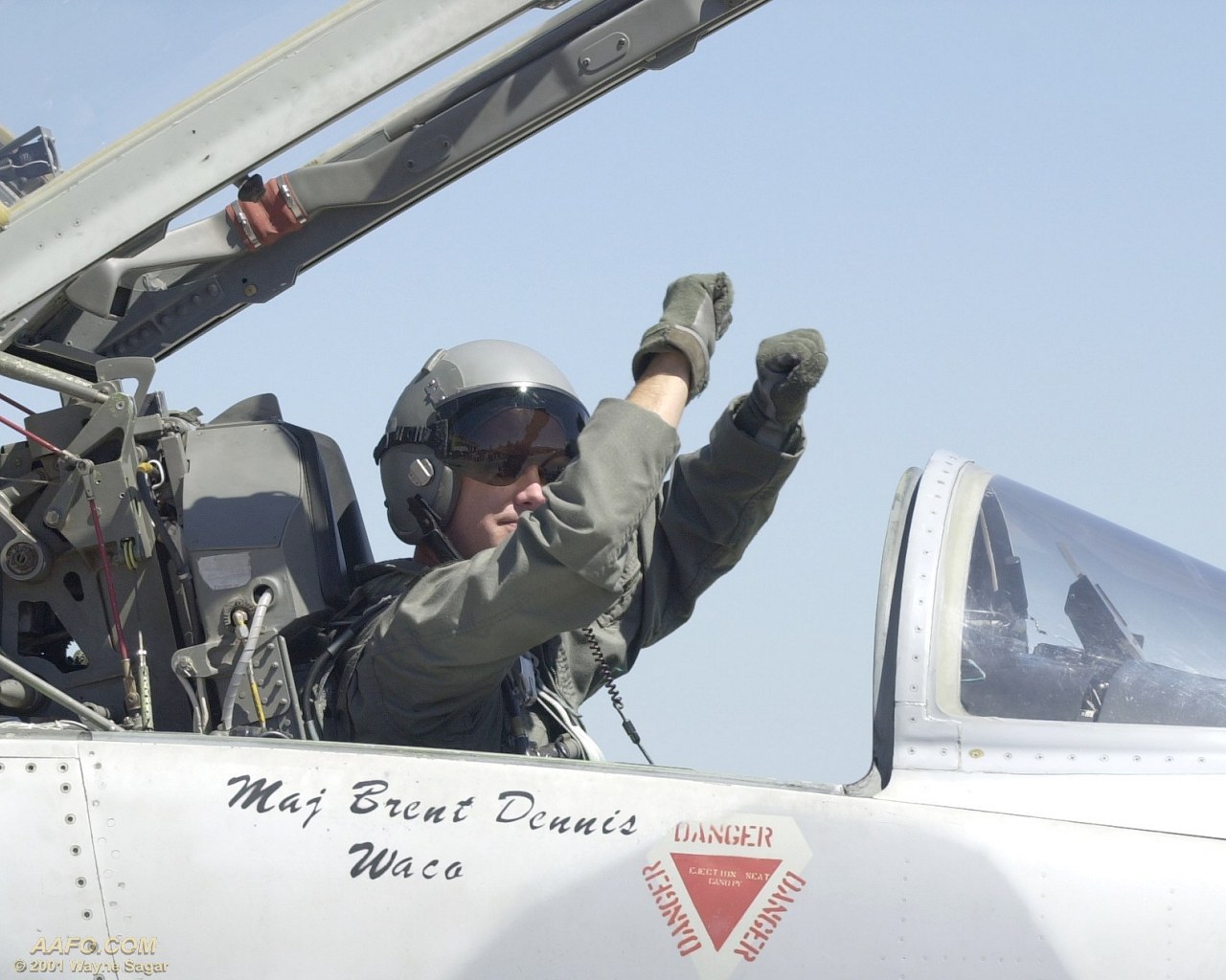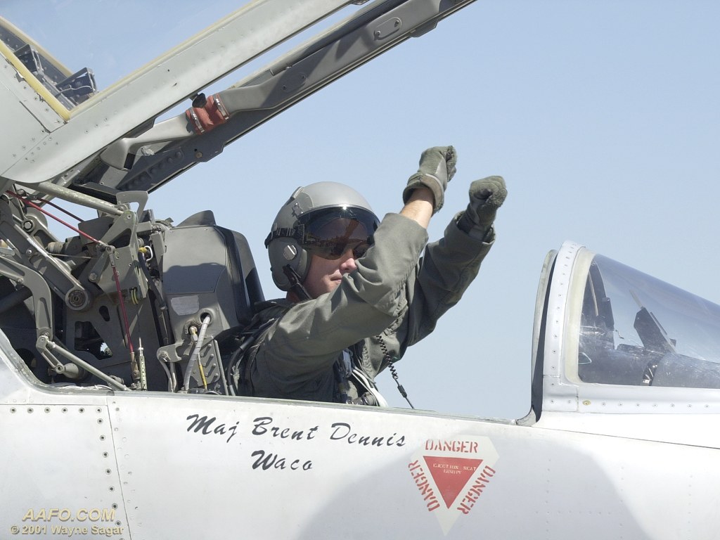 The expression of fighting spirit shown by Major Brent Dennis from US Marine Training Squadron-401 (VMFT-401) as he taxis out for a fight in his "Bad Guy" F-5E Tiger II "adversary fighter" says it all. Major Dennis and others from VMFT-401, along with squadrons from across the country and Canada, participated in the dissimilar air combat training exercise "Sentry Eagle" held at Oregon's Kingsley Field over the last week.